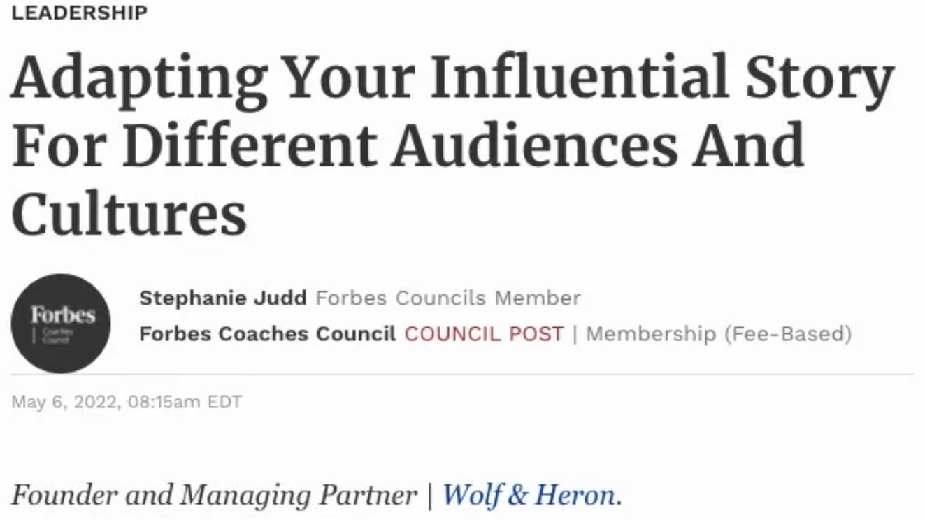 Early in our Wolf & Heron days, Stephanie facilitated our Influential Storytelling workshop for a major new client. It was a high-stakes moment: 100+ people in the room, a huge win for us, and her first time delivering the workshop solo. She opened with a story she had polished, rehearsed, and delivered successfully many times before.